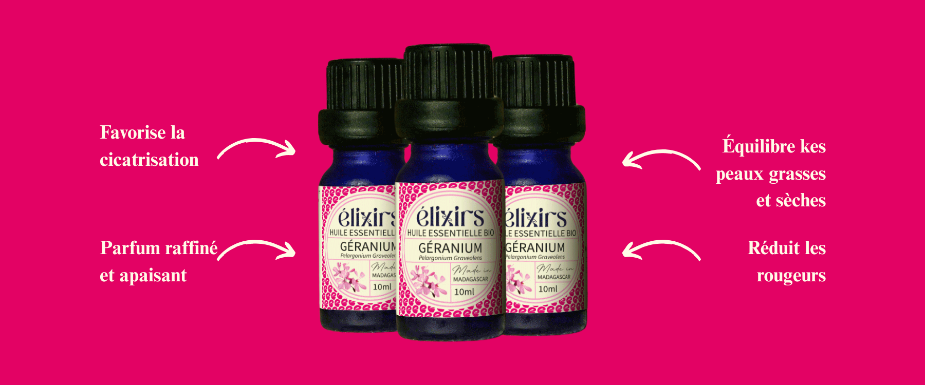 L'huile essentielle de géranium bourbon est une huile très prisée en aromathérapie et en cosmétique, principalement pour ses vertus régénératrices, équilibrantes et antiseptiques.