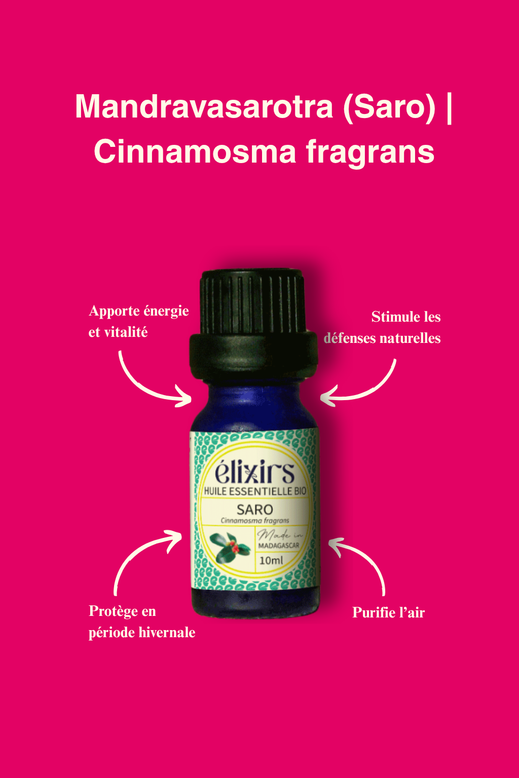 L’huile essentielle de (Saro) Mandravasarotra est un trésor naturel de Madagascar, polyvalente et puissante, idéale pour renforcer l’immunité, purifier l’air, et revitaliser l’organisme, tout en offrant une protection contre les infections bactériennes et virales.