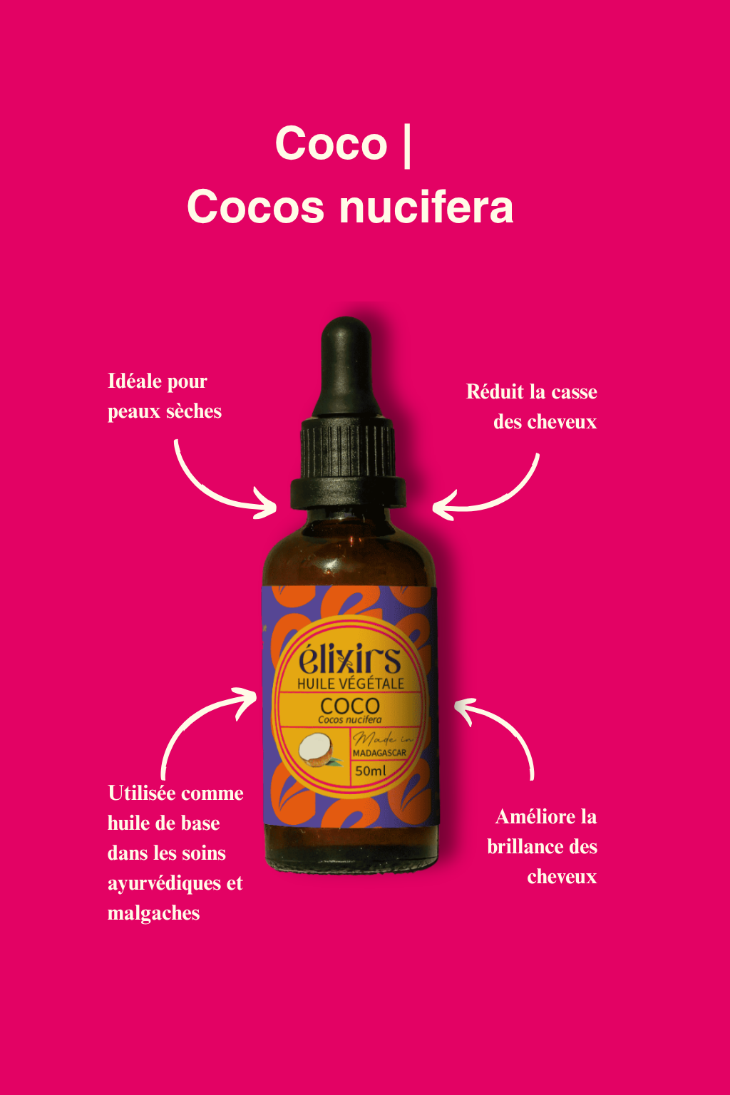 L’huile de coco vierge d'Élixirs de Clara est un produit 100% naturel, biologique et multi-usage. Extraite à froid, elle préserve tous ses bienfaits hydratante, apaisante, antioxydante et protectrice pour la peau, les cheveux et le bien-être quotidien.