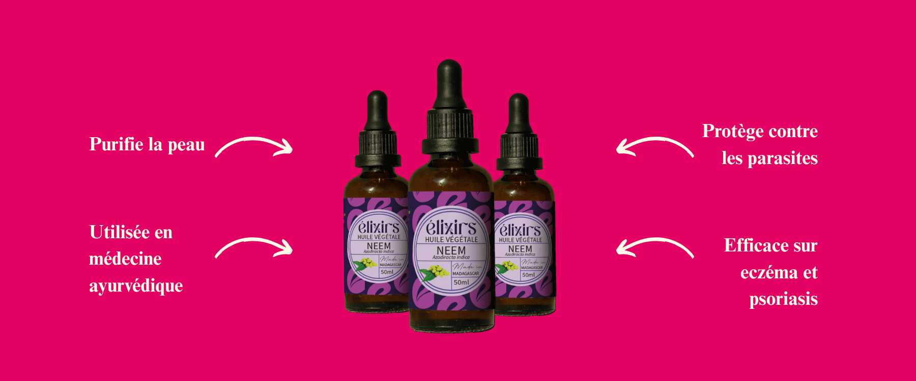 L'huile de neem Élixirs de Clara est une huile végétale 100% pure, obtenue par pression à froid des graines du margousier (Azadirachta indica). Originaire d'Inde où elle est utilisée depuis des millénaires en médecine ayurvédique, cette huile au parfum boisé caractéristique est un must-have pour les soins purifiants et rééquilibrants.